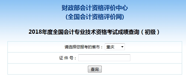 重庆2018初级会计考试成绩查询入口已开通啦,重庆万州区、涪陵区、渝中区、大渡口区、江北区、沙坪坝区、九龙坡区、南岸区、北碚区、万盛区、双桥区、渝北区、巴南区、黔江区、长寿区、江津区、合川区、永川区、南川区的初级会计考生均可登录财政部会计资格评价中心(http://kzp.mof.gov.cn/)进行查询。