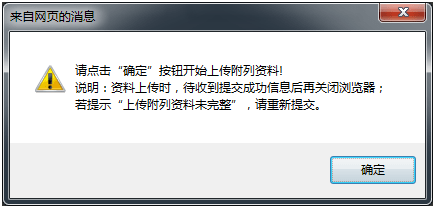 注意:资料上传时,请在收到提交成功信息后再关闭浏览器。若提示“上传附列资料未完整”,请重新提交。如果上传时间较长,请耐心等待。