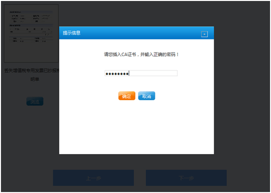 插入CA证书,输入正确的CA密码,点击[确定]按钮继续操作。