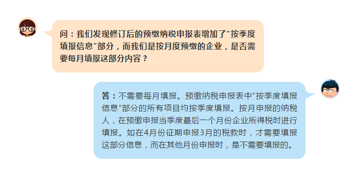 预缴申报表增加了“按季度填报信息”,按月预缴企业要每月填报吗?