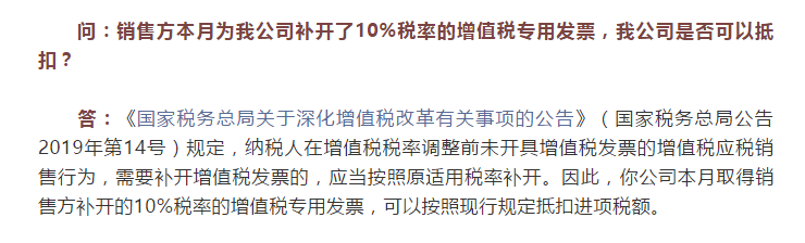 销售方本月为我公司补开了10%税率的专票,能抵扣吗?