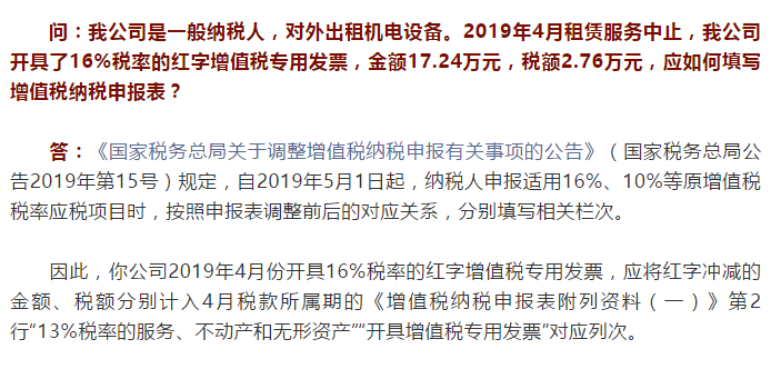 因租赁服务中止开了16%税率的红字发票,如何填写申报表?