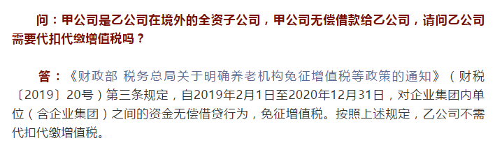 甲是乙的境外全资子公司,甲无偿借款给乙,要代扣代缴增值税吗?