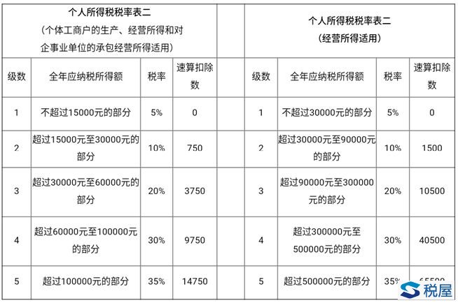 (左边为税法修改前规定的税率表,右边为税法修改后规定的税率表)
