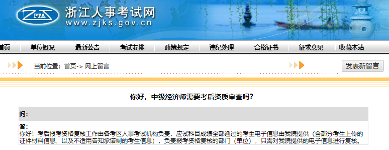 考试成绩公示10天,与考后复核同步进行,但考后复核工作必须在公示结束前2天完成。公示和复核期间,若查实不符合报考条件或有其他虚假承诺的,合格成绩无效。详情可点击《2019年浙江中级经济师考试合格人员名单公示》查看