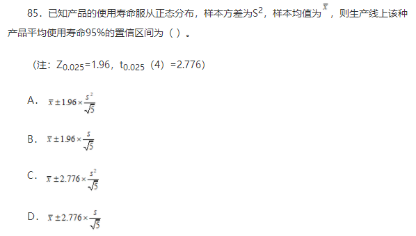 84.根据产品质量标准和抽样调查结果,可得样本的合格率p为( )。