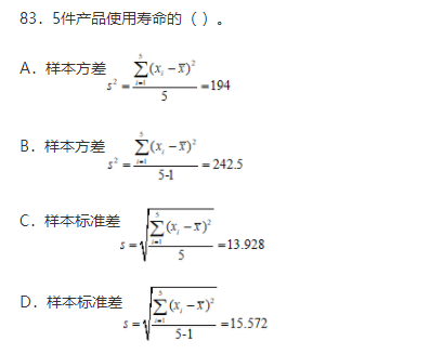 (二)质检人员从生产线上随机抽取5件产品检验其使用寿命,产品的质量标准是使用寿命不小于100小时。5件产品的使用寿命(单位:小时)分别为125、100、115、90、125。请根据上述资料回答下列问题: