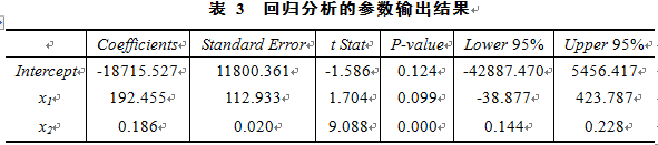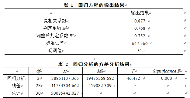 表 1 回归方程的输出结果
