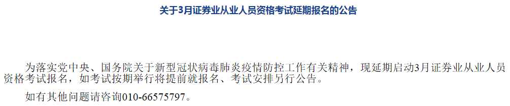 中国证券业协会延期启动3月证券业从业人员资格考试报名,疫情防控期间,请各位同学少出门,勤洗手,常通风,合理利用时间进行备考。