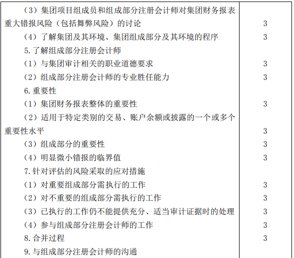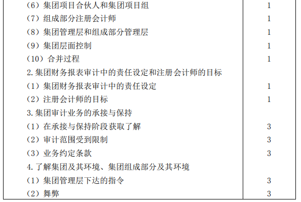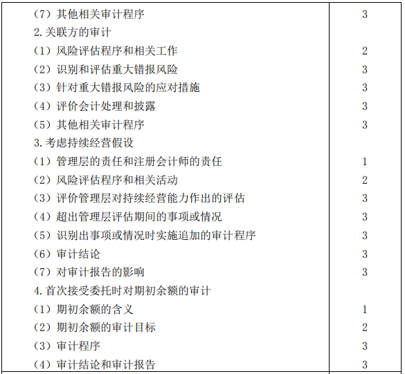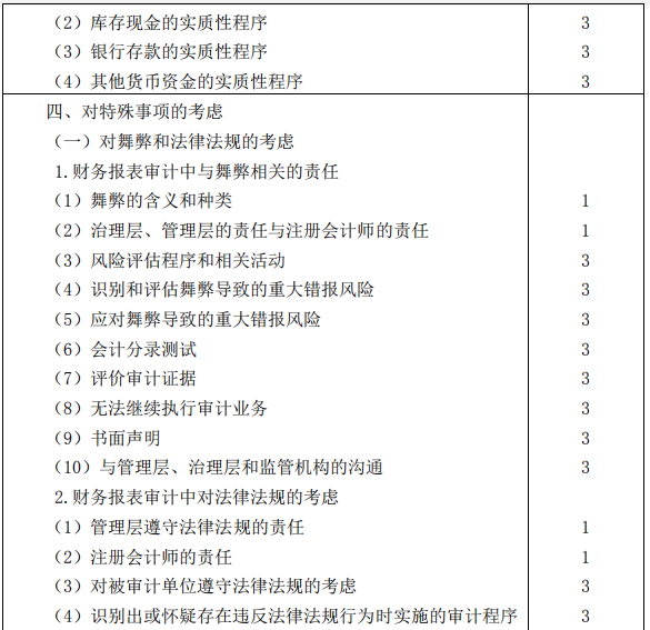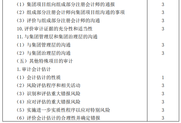 4.财务报表审计中对特殊项目的考虑,包括对舞弊和法律法规的考 虑、审计沟通、对集团财务报表审计的特殊考虑、利用他人的工作,以及 对会计估计、关联方和期初余额等其他特殊项目的审计;