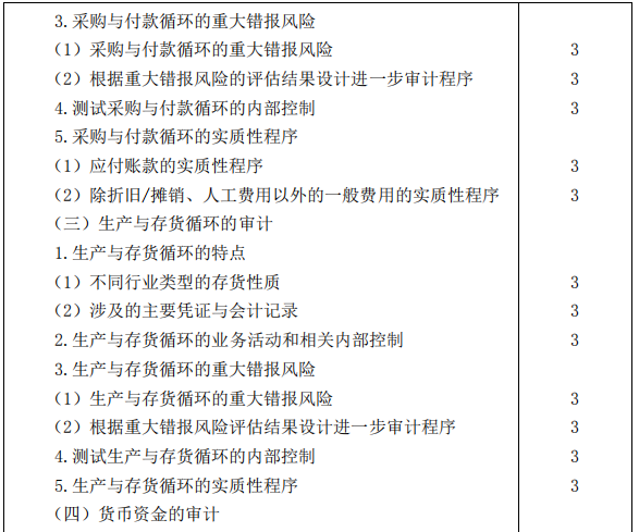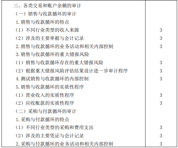3.财务报表审计中各类交易和账户余额审计,包括销售与收款循环、 采购与付款循环、生产与存货循环以及货币资金的审计;