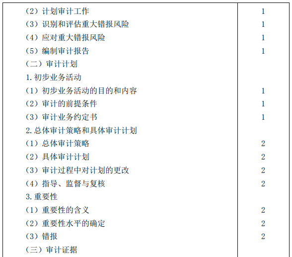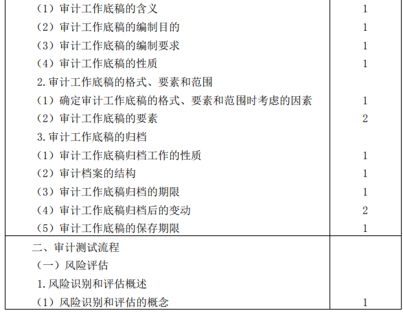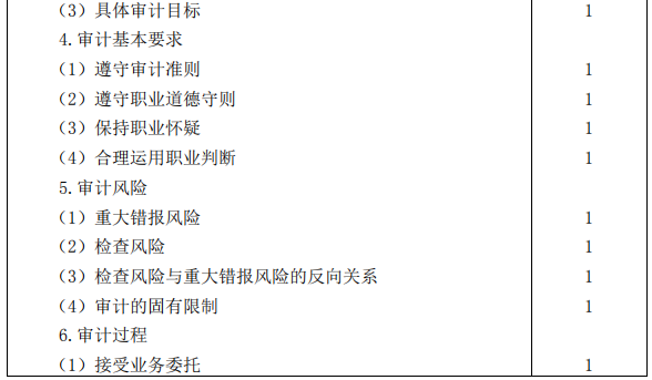 1.财务报表审计基本原理,包括审计概述、审计计划、审计证据、审 计抽样、信息技术对审计的影响,以及审计工作底稿;