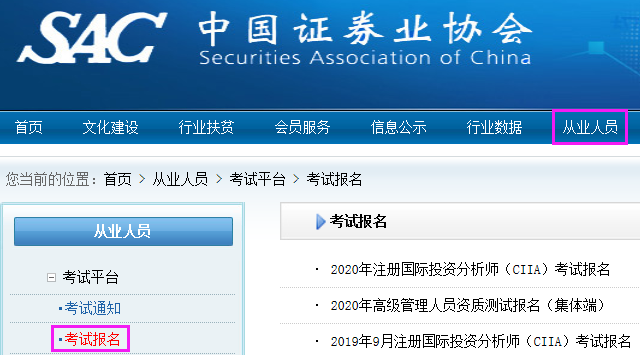 2020年中国证券从业资格考试报名入口官网:中国证券业协会(网址是http://www.sac.net.cn/)