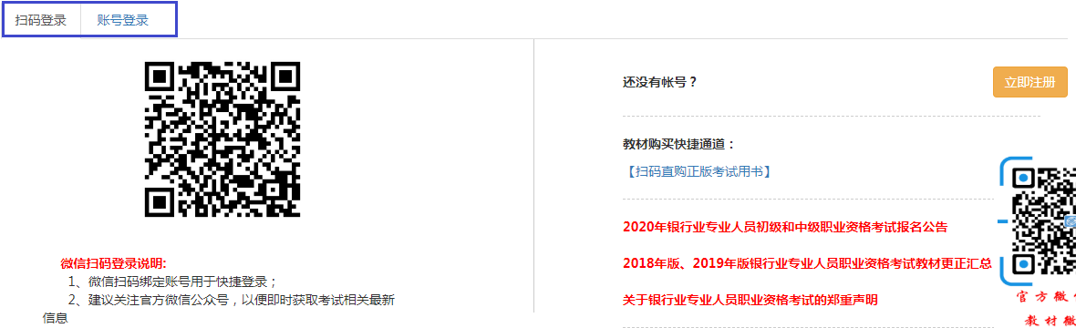 为方便广大考生登录系统并及时获得关于考试的各类咨询,2020年首次启用扫码登录,考生可自行选择登录的方式(扫码或账号登录),使用扫码登录首次绑定账号后今后登陆可直接使用绑定的手机登录系统,无需再输入账号密码。