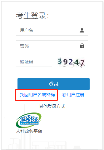 通过中国人事考试网报名登录页面【找回用户名或密码】功能找回用户名或密码步骤如下: