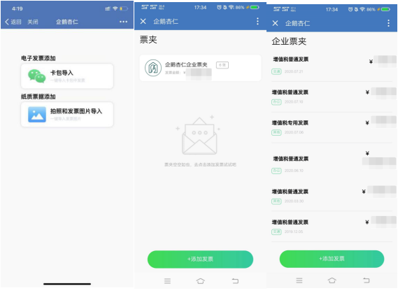 企鹅杏仁员工可以通过拍照识别、扫码添加、邮箱自动同步、第三方票源授权等多种方式收集发票,自动归类保存至企业专属票夹,无需员工手动整理。同时,高灯企票夹可通过设定准入规则,自动校验发票,帮助财务筛除假发票和重复报销发票,传递导出发票数据,自动生成台账,帮助企鹅杏仁多快好省把握费控源头,强化内控管理。