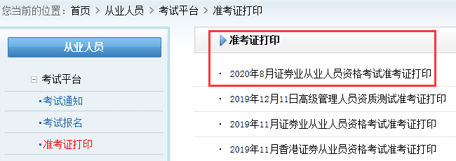 广大考生也可以直接点击图片进入2020年8月证券从业资格考试准考证打印入口: