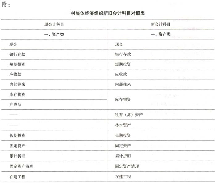附件: 《村集体经济组织新旧会计制度有关衔接问题的处理规定》全文