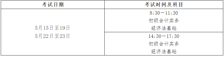(一)初级资格考试于2021年5月15日至19日,5月22日至23日,分两个时间段进行。具体安排如下: