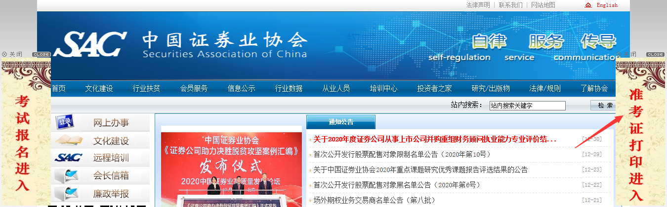 证券从业资格考试准考证打印的唯一网址为协会官方网站(www.sac.net.cn),考生应避免登录其他网站进行上述操作,以免泄漏个人信息。