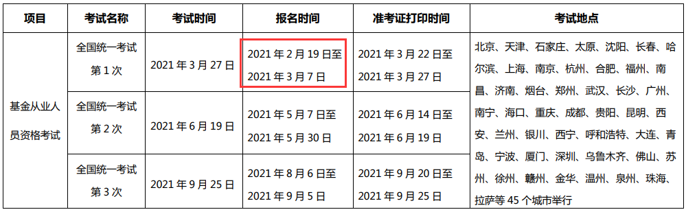 2021年西藏第一次基金从业人员资格统考报名时间
