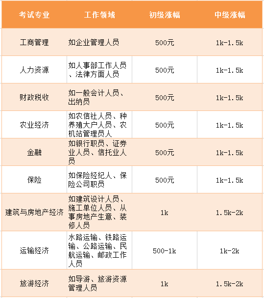 由于经济师涉及的行业广,不同级别和行业,加薪幅度也会有一定的区别!小编给大家整理出了不同级别和各行业的加薪标准,你们可参考一下:(知识产权为2020新增专业,小编没有做统计哦)