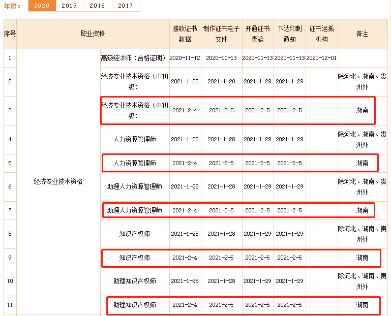 小编进入中国人事考试网发现,湖南省2020年中级经济师证书办理进度更新了!不仅开通了证书查验通道,还下达纸质证书印制通知了,详情如图所示: