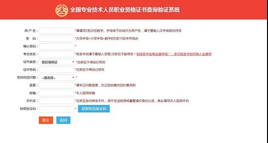 全国专业技术人员职业资格证书查询验证系统与全国专业技术人员资格考试报名服务平台共享注册信息,已在全国专业技术人员资格考试报名服务平台注册过的用户,请使用该平台的用户名、密码登录证书查询验证系统。