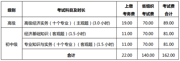 102/001 经济专业技术资格考试收费标准(单位:元)(表二)