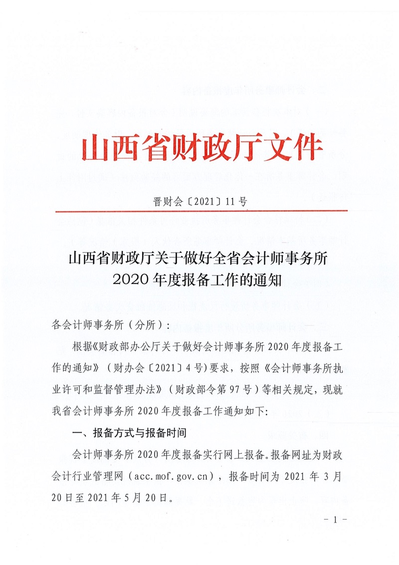 山西省财政厅关于做好全省会计师事务所2020年度报备工作的通知