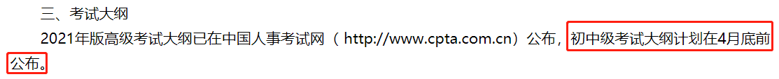 从已公布的2021年中级经济师报名通知可知,2021年中级经济师考试大纲计划在4月底前公布。