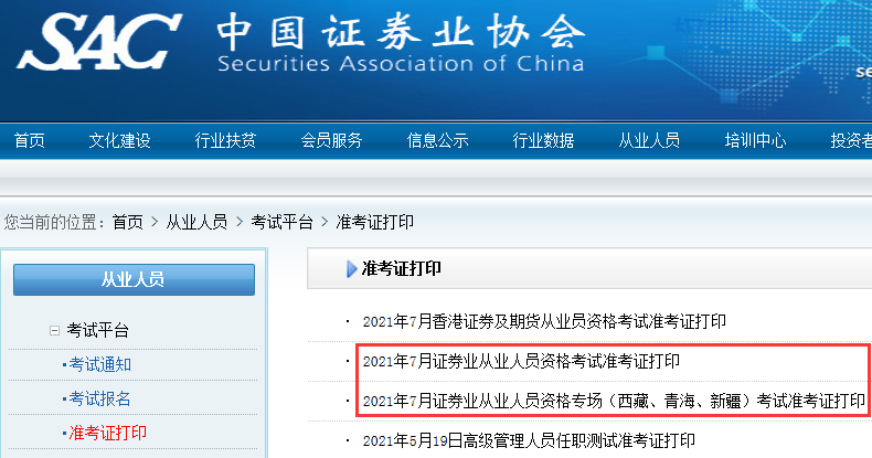 关于准考证打印,与报名一样考生也是只需要在网上进行就可以了,证券从业资格考试准考证打印入口为中国证券业协会官网(https://www.sac.net.cn/)。