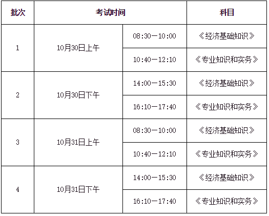 初级、中级经济考试分2天上、下午4个批次实施,各专业类别具体考试时间以准考证为准。