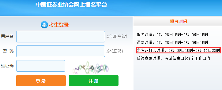 8月证券行业专业人员水平评价测试准考证打印时间:8月13日15时起