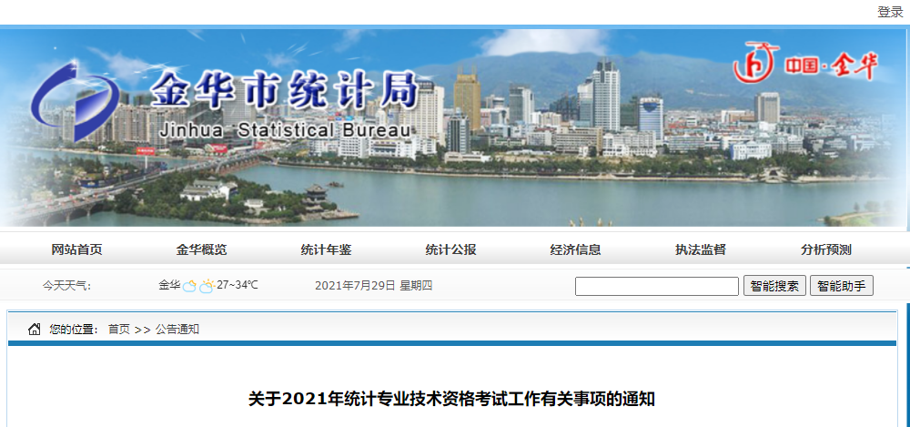 (二)考生可关注“金华统计”微信公众号,从页面右下角“统计服务”进入“资格考试”栏目,该专栏将及时发布考试有关通知,供考生浏览查阅。