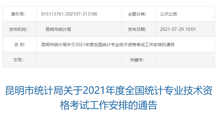 昆明市统计局关于2021年度全国统计专业技术资格考试工作安排的通告