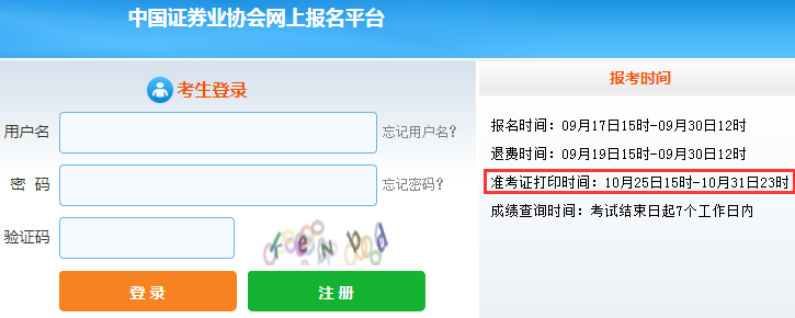 2021年10月广西证券从业资格准考证打印时间为10月25日-31日。