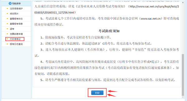 证券从业考试的具体时间、考场地点、防疫要求等都会在准考证上说明,考生在打印准考证前,务必要先核实下自己的身份信息是否正确,确认无误后,打印准考证。如有错误,及时联系中国证券业协会进行修改。