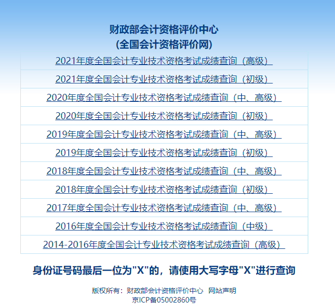第一步、进入全国会计资格评价网(http://kzp.mof.gov.cn/)
