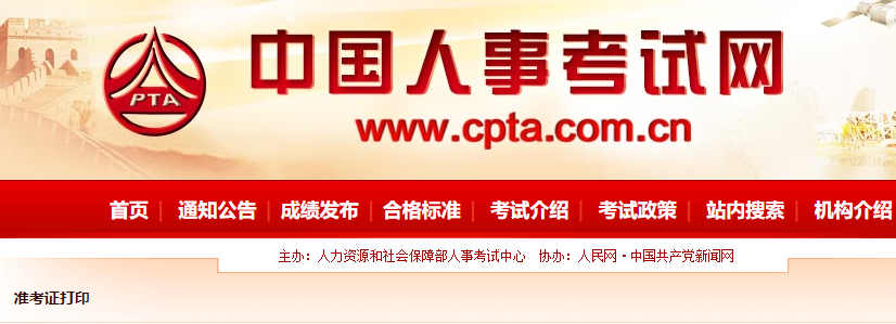 准考证打印网址: 中国人事考试网(http://www.cpta.com.cn)