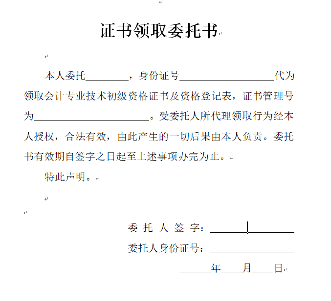 4、如委托他人代领,代领人需携带以下材料前来领取资格证书: