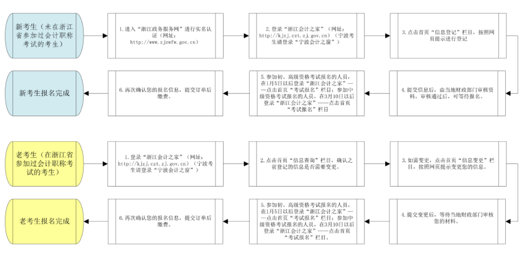 1月23日16:00关闭“浙江会计之家”—“信息变更”“信息登记”通道和“宁波会计之窗”信息采集变更通道,此时间点前未在浙江省内完成个人信息登记的人员,无法参加考试报名。