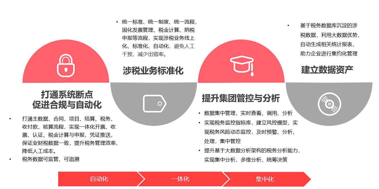 4、业财税数据一体化,涉税数据源准确完整,计税申报更精准合规。