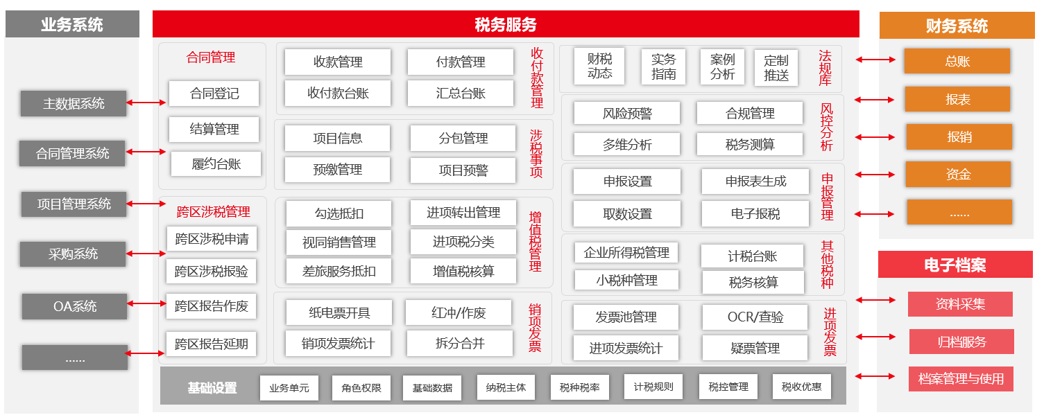 1、打通主数据、合同、项目、结算、收付款、财务核算及税务管理,实现涉税数据统一管理;