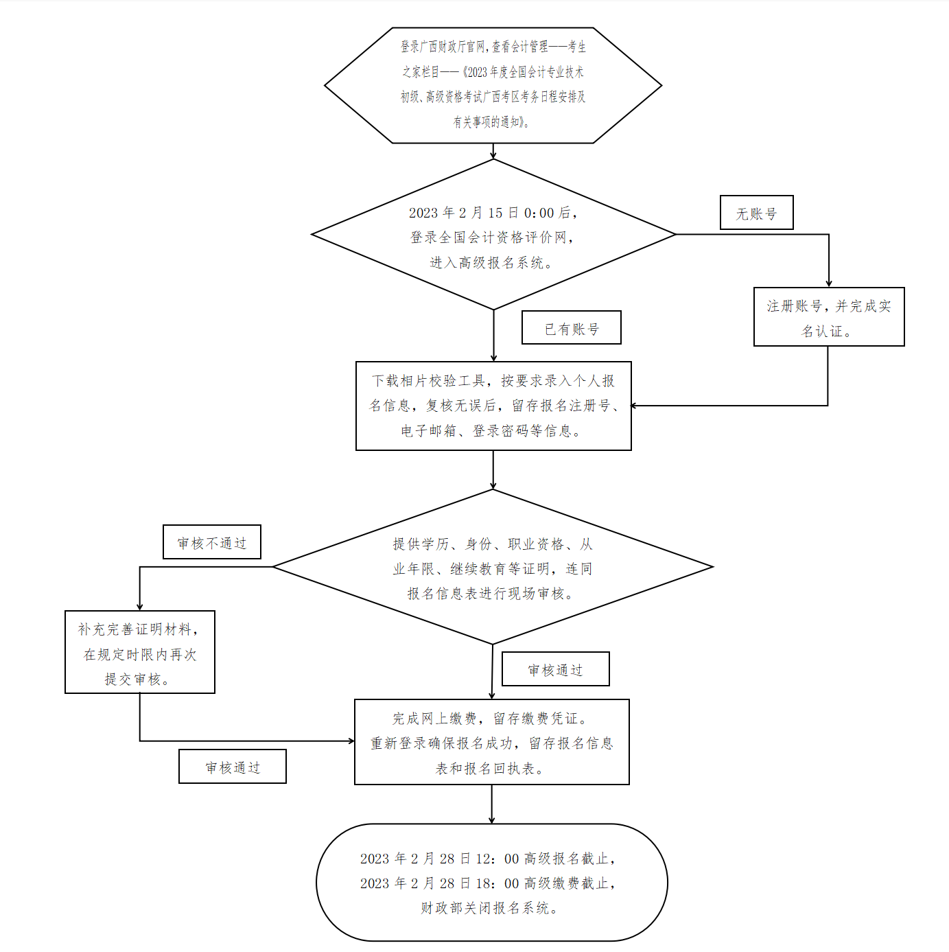 - 高级报名时间: 2023年2月15日0:00至2月28日12:00,现场审核时间:2月15日8:00至2月28日12:00正常上班时间,逾期不再办理。