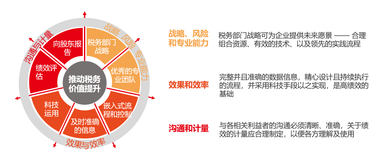 毕马威税务科技合伙人陈立认为:企业税务数字化转型已经具备了很好的支撑条件——企业税务管理工作者的管理概念有了很好的理念认识基础、业务支持基础、组织人员基础、产品实践基础以及项目管理基础,但是想要进一步达到税务合规标准化、业务操作自动化、集中管控集约化、风险控制数据化,企业可从战略、风险和专业能力,效果和效率,沟通和计量等方面出发,全面升级税务管理,并进一步推动税务价值提升。
