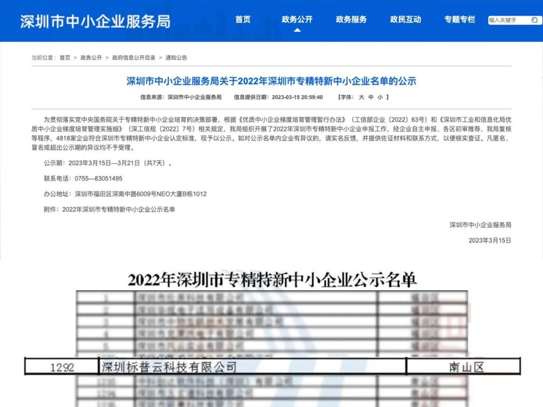 3月15日,深圳市中小企业服务局公示了“2022年深圳市专精特新中小企业名单”,标普云榜上有名!