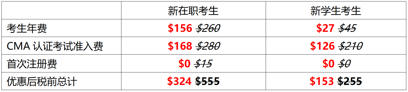 此优惠只针对首次加入的在职考生及学生考生类别,对考生续费与已经报名参加CMA项目的考无效。